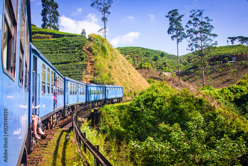 Fototapeta premium train from Nuwara Eliya to Kandy among tea plantations in the highlands of...