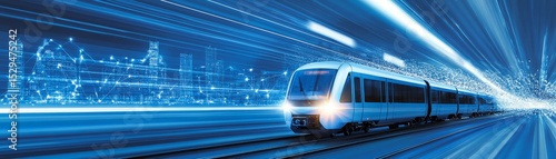 Fototapeta premium Train journey through vibrant city at night captivating urban scene