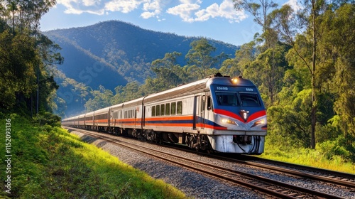 © Pisit, Obraz premium Train journeys showcase scenic routes and comfort.