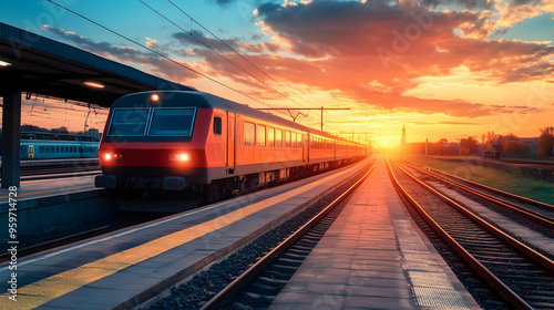 © Selene Studio, Naklejka premium Train Leaving Station at Sunset
