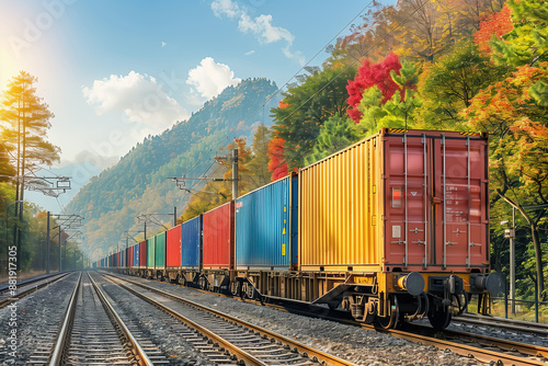 © Siranutt, Obraz premium Train Logistic. Generative AI.