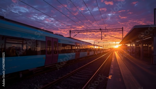 © Xo, Naklejka premium Train on Platform at Sunset