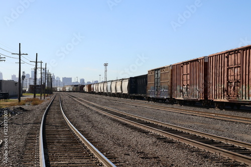 © Tarell, Obraz premium train on railway in a local neighborhood.