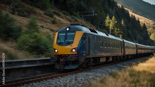 Naklejka premium train on the railway Dynamic Train Running at High Speed on Railway Track