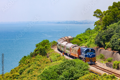 © Sean Hsu, Fototapeta premium Train on the railway near Fangshan Station in pingtung, taiwan
