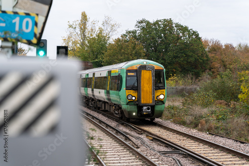 © MarshallChan, Naklejka premium Train on tracks in autumn landscape