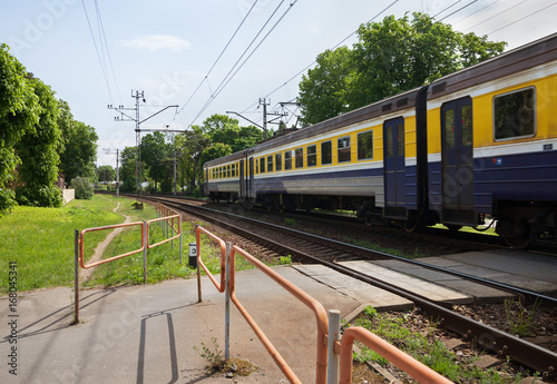 © Ludmila Smite, Naklejka premium Train passing a railway crossing.
