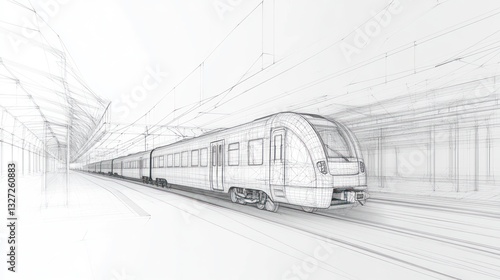 © Lesuna, Naklejka premium Train Station Blueprint Sketch