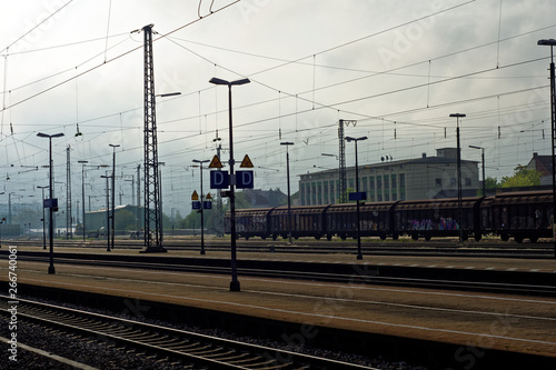 Fototapeta premium Train station on a cloudy morning in Ansbach