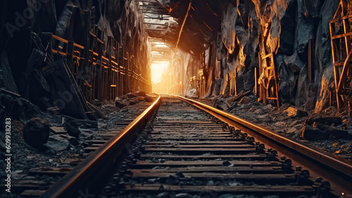 © PRI, Naklejka premium train track in a tunnel. Generative Ai