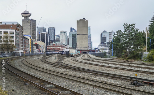© 4kclips, Fototapeta premium Train tracks at Gastown district in Vancouver - VANCOUVER - CANADA - APRIL 12, 2017