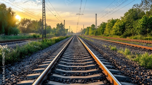 Obraz premium Train Tracks at Sunset