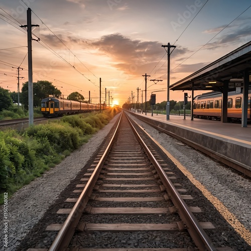 © ลลิดา ไชยศรีษะ, Fototapeta premium Train Tracks at Sunset