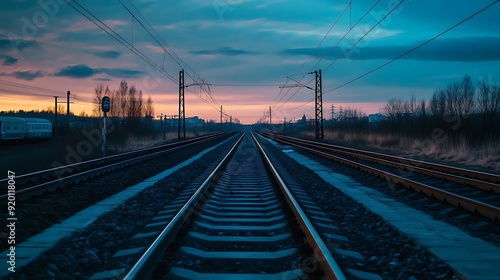 © share, Fototapeta premium Train Tracks at Sunset - A Realistic Photograph