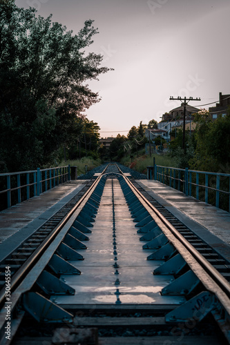 © Lucas, Fototapeta premium Train tracks at sunset vertical