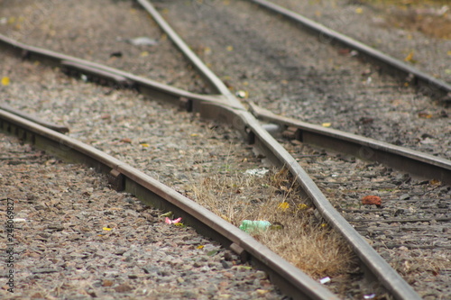 Fototapeta premium Train tracks close up photography
