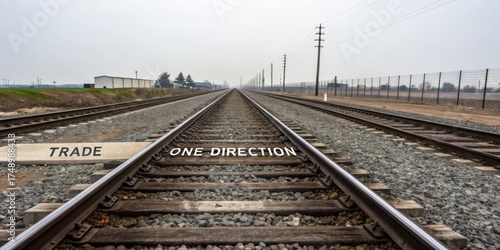 © mat, Obraz premium Train Tracks Converging into a Single Line in Foggy Landscape