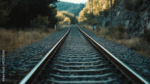 © h4kunA, Fototapeta premium train tracks in a calm atmosphere.