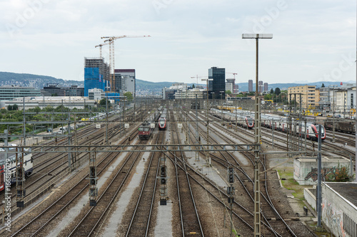 © DSGNSR, Fototapeta premium train tracks in zurich switzerland