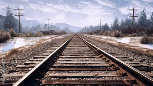 © Shades3d, Fototapeta premium Train Tracks into the Distance. Generative Ai