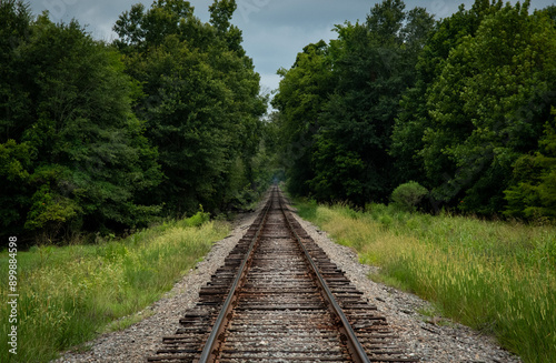 © Michael, Fototapeta premium Train tracks into the trees