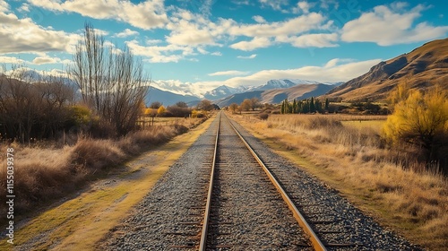 © atar, Fototapeta premium Train Tracks Leading to Mountains