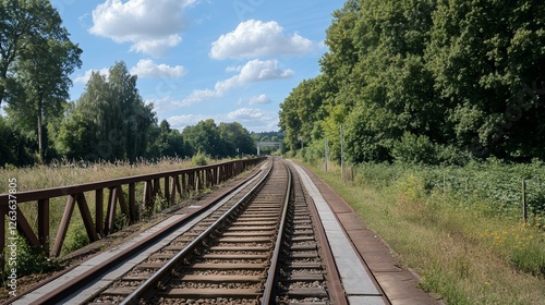© Mikael, Obraz premium Train tracks through summer forest