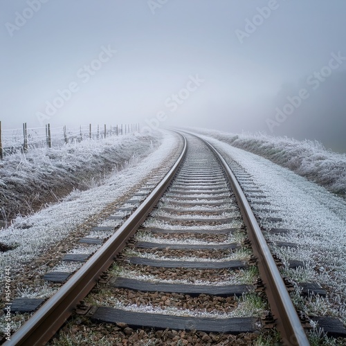 Obraz premium Train Tracks Vanishing Into Winter Silence