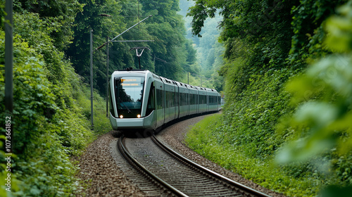 Fototapeta premium Train Traveling Alongside a Forested Path in Scenic Countryside