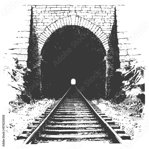 Fototapeta premium Train tunnel with tracks and light at the end