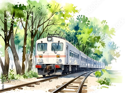© PikGrand, Naklejka premium Train Watercolor Landscape Nature Art