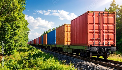 Fototapeta premium Train with cargo containers with outdoor scene.