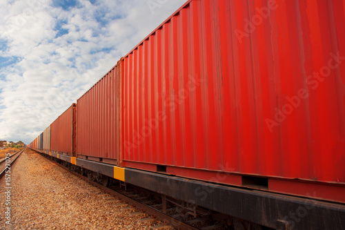 © Yellow Boat, Fototapeta premium train with container for shipping goods.