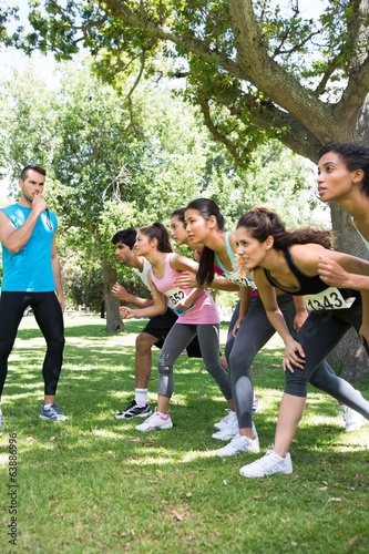 Obraz premium Trainer whistling while runners ready to race