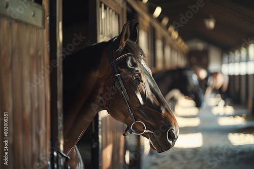 Fototapeta premium Trainers at a horse stable prepare horses for equestrian competitions with specialized diet - exercise - and grooming routines