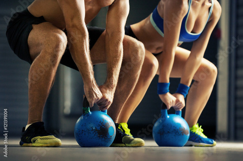 © grki, Naklejka premium Training by kettlebell