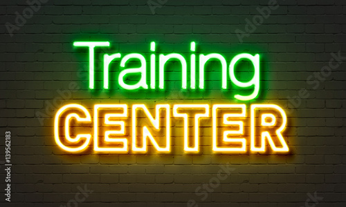Fototapeta premium Training center neon sign on brick wall background.