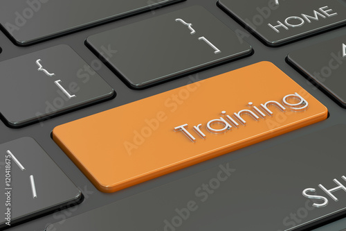© alexlmx, Fototapeta premium Training, orange key on keyboard, 3D rendering