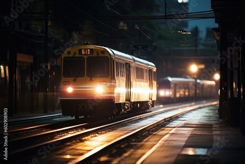 Fototapeta premium Trains in Action: Vibrant Long Exposure Photo Showcasing the Motion and Energy
