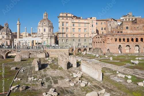 Obraz premium Trajans column. Ancient Rome cityscape landmark. Roman forum monument. Italy
