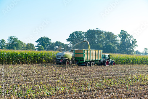 Fototapeta premium Traktor Abtransport gehäckselter Mais