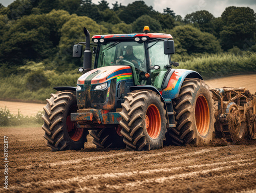 © Comofoto, Fototapeta premium Traktor bei der Feldarbeit