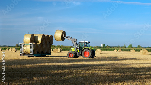 © Peter Maszlen, Naklejka premium Traktor beim aufladen von Strohballen 16:9