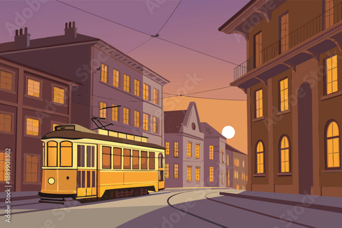 Naklejka premium Tram Line Old Town Evening