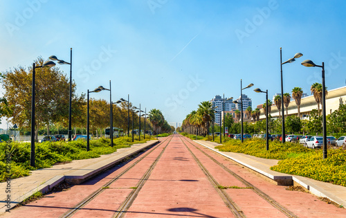 Naklejka premium Tram line under construction near the City of Arts and Sciences in Valencia, Spain