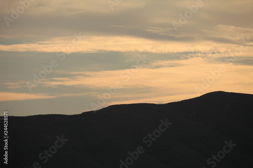 Obraz premium Tramonto arancione con silhouette di collina, Toscana,Italia