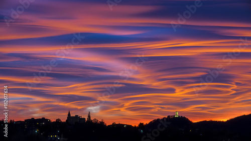 Fototapeta premium Tramonto spettacolare e drammatico nel cielo del nord Italia