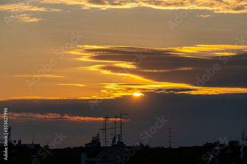 © Alessandro Calzolaro, Obraz premium Tramonto sui tetti di San Siro (Milano)