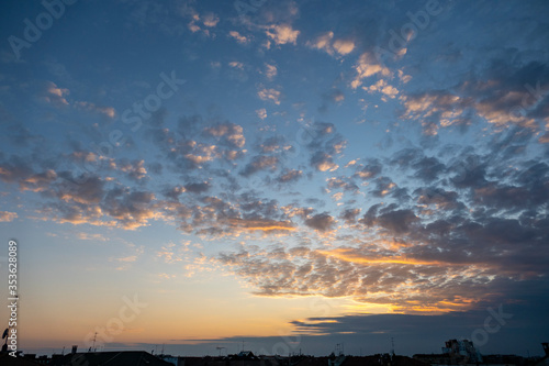 © Alessandro Calzolaro, Obraz premium Tramonto sui tetti di San Siro (Milano)