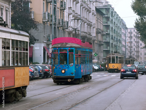 © acronimo, Naklejka premium trams in tail in traffic